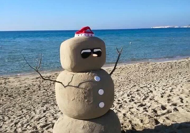 Многие одесситы 27 декабря купались в море и даже строили снеговика из песка.