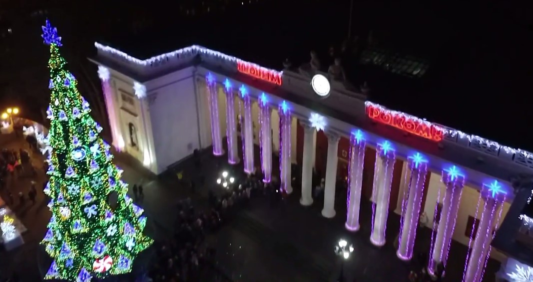 Пользователь YouTube Fly od wings опубликовал видео, на котором изображены Приморский бульвар, украшенный яркой иллюминацией и главная хвойная красавица города с высоты. Взглянув видео, можно с твердой уверенностью сказать, что Одесса готова к праздникам.