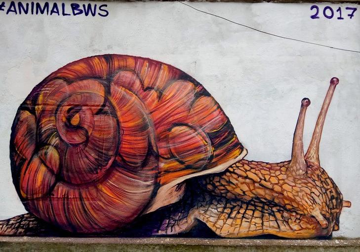 Новый мурал появился в Одессе на улице Еврейской. На стене изображена улитка. Об этом сообщает 048.