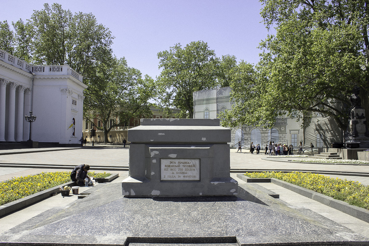 Легендарную одесскую пушку сняли с постамента и увезли с Думской площади на реставрацию.