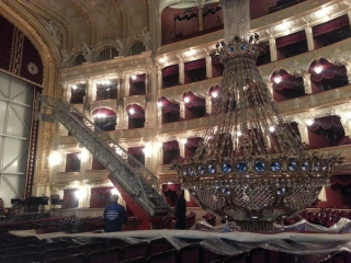 На днях в Одесском оперном закончилась генеральная уборка. Чтобы вымыть габаритную хрустальную люстру, работникам понадобилось целых три дня.