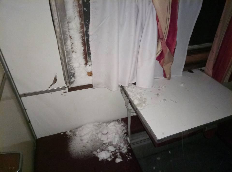Напомним, пассажиры 14-го вагона поезда №108 из Одессы в Ужгород, обнаружили в вагоне снег. В плацкартном вагоне не только не работало отопление. Снег буквально задувало на полки сквозь щели в окнах.