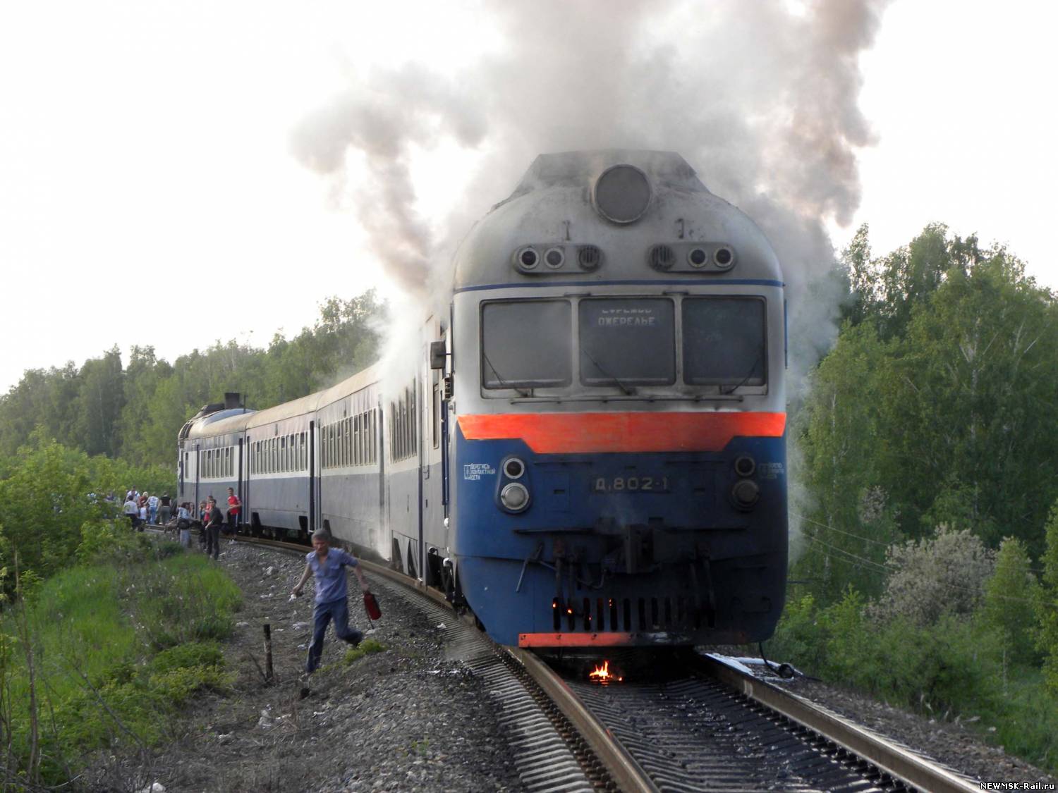 Огонь повредил перегородку тамбура-туалета с нижней части. Поезд опоздал на тридцать минут.