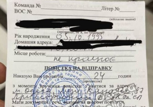 В Одесской области уклонист с поддельными документами пытался пересечь границу: ему вручили повестку. Фото: sud.ua