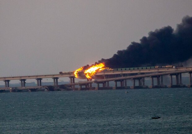 Утром 8 октября на Крымском мосту в аннексированной Керчи прогремел взрыв и начался сильный пожар. Конструкция моста частично разрушена, движение транспорта остановили минимум до конца месяца.