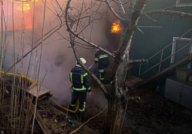Спасатели на месте пожара Фото: ГУ ГСЧС в Одесской области