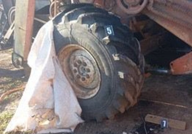 Колесо комбайна после поджога. Фото: ГУНП в Одесской области
