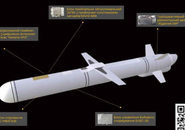 ГУР сообщает, что спутниковая навигационная система, едва ли не впервые для крылатых ракет противника, представлена сочетанием изделий двух различных российских компаний — помехоустойчивого приемника спутникового сигнала с цифровой антенной решеткой "Комета-м12" производства "Вниир-прогресс" и приемно-вычислительного блока. NAVIS NR9. Для их интеграции используется блок сопряжения производства АНЧП "Темп-Авиа", известного изготовлением полетных контроллеров для управляемых авиабомб.