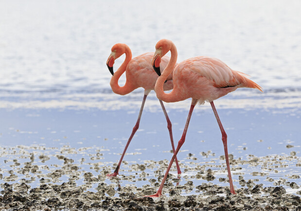 Фламинго обитают на мелководье, где питаются мелкими ракообразными моллюсками и водорослями. Именно такой рацион обеспечивает их характерную розовую окраску. Птицы строят гнезда из ила в виде конусов и обычно откладывают от одного до трех яиц.
