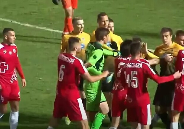В Первой лиге Украины футбольный матч между "Волынью" и "Агробизнесом" закончился потасовкой на поле. В стычку ввязались в том числе футболисты со скамейки запасных.