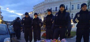 "Русский марш" в Одессе: пришли проукраинские, милиция и пенсионеры с цветами