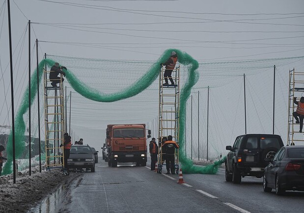 Окружную дорогу вокруг Харькова затягивают антидроновыми сетками