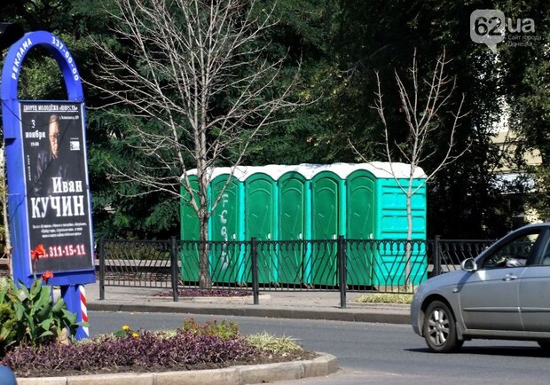 На Артема установили зеленые биотуалеты с пометкой от фанов "Шахтера"